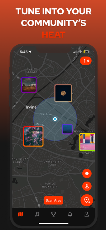 Gebruikers kunnen hun eigen pins plaatsen en 'heat' verzamelen van andere gebruikers die hun muzieksmaak waarderen. Bovendien worden alle geplaatste pins en bijbehorende informatie opgeslagen in de persoonlijke discografie van de gebruiker, wat hen helpt een invloedrijke muziekbron te worden. De app bevat ook een leaderboard dat de populairste nummers en gebruikers toont, waardoor een competitief element aan de muziekervaring wordt toegevoegd.